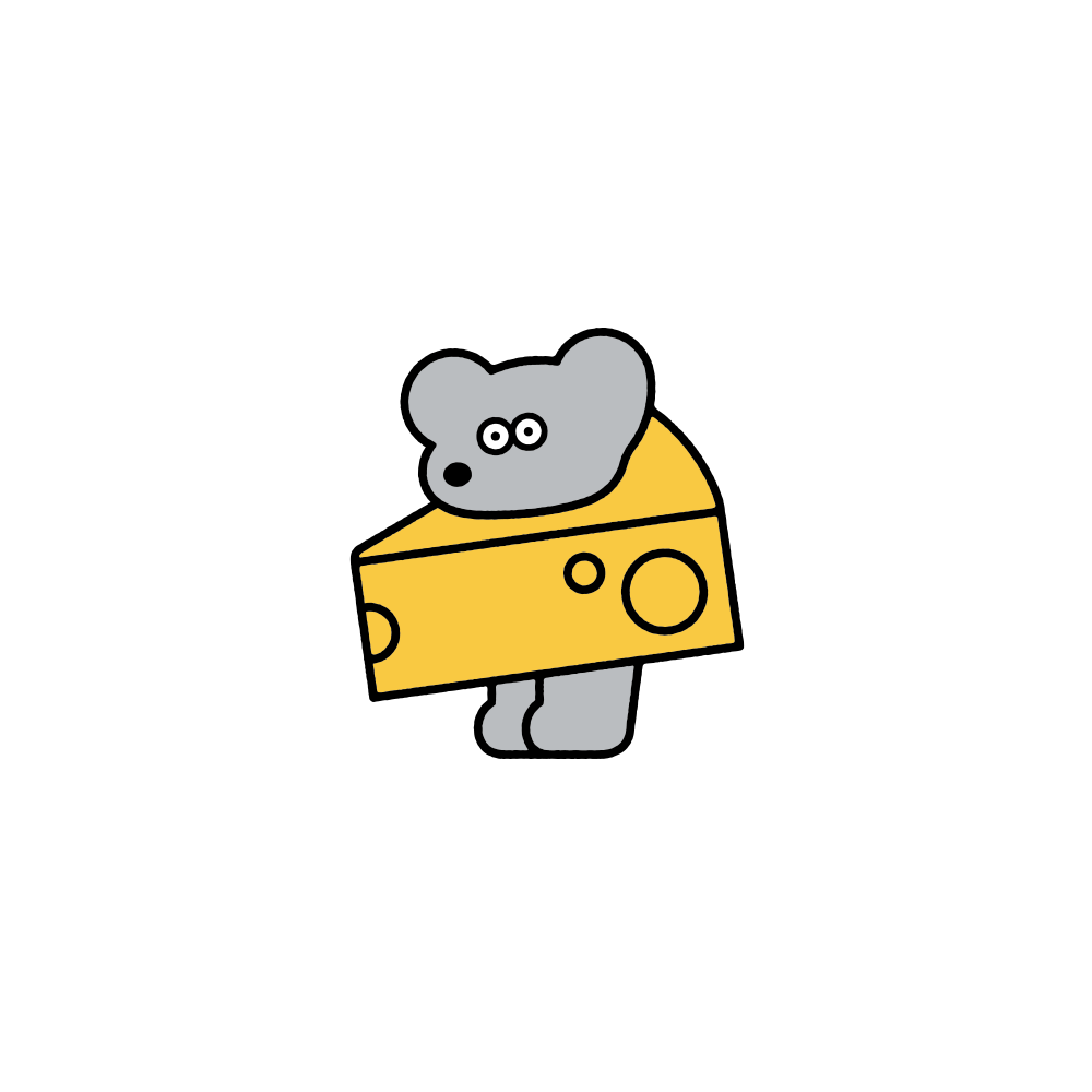 ねずみのANDY。しっぽのないねずみの男の子です。松本セイジが描くアート作品のキャラクターとして誕生しました。食いしん坊のANDYは、いつもチーズのことで頭がいっぱい。好きなことは、チーズに挟まること。