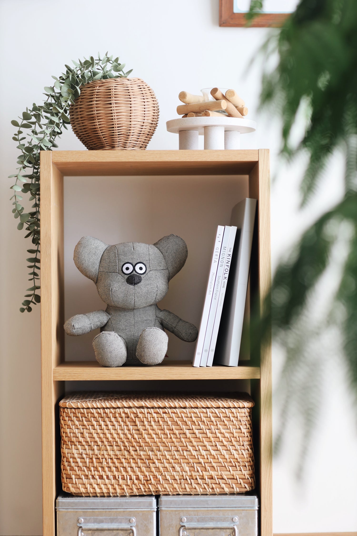 どんな場所にもちょこんと座れる安定感で、玄関やベッドサイドなど、お気に入りの場所にすぐ馴染みます。